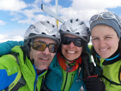 Un cop aqui traiem esquis, i a peu anem progressant per l esmolada cresta, amb cura arribem dalt del estret cim, on amb prou feines caben 3 persones.
